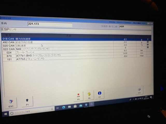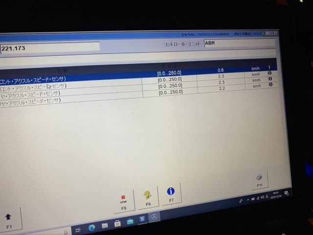 診断機で実測値を見ながら車を動かすと、左フロントだけ速度を読み取っていません