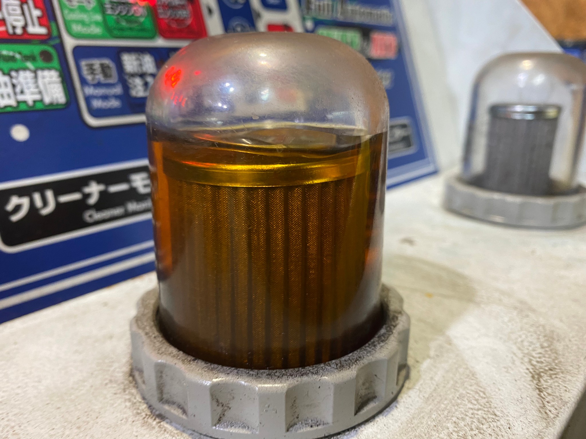 まずは1回目の圧送交換を行い、ミッション内部の汚れを浮かせます。交換後は自動でクリーニングモードに移行し、新油の洗浄力で汚れをフィルターへ回収します。