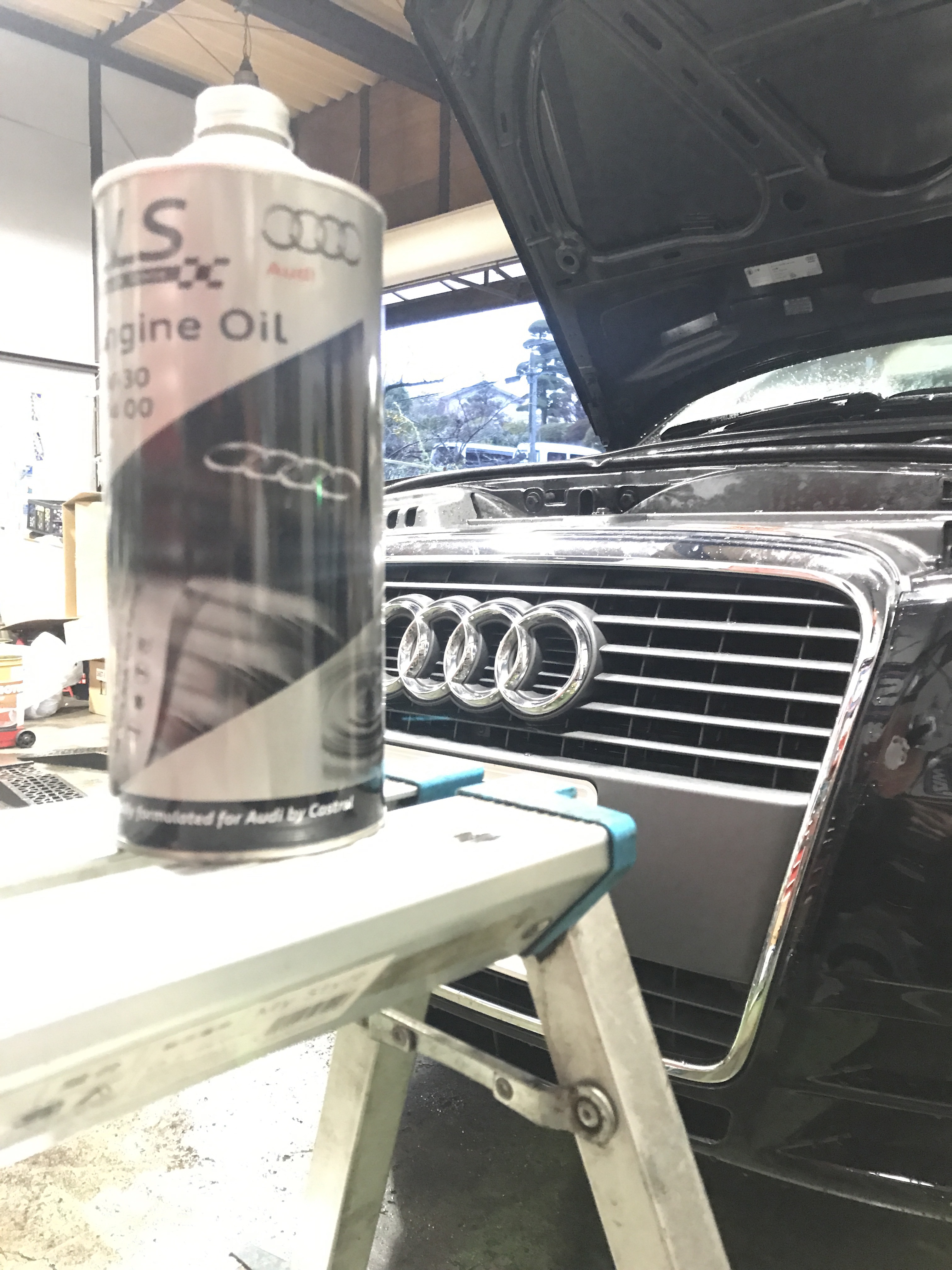 オイルエレメントと持ち込みのアウディ純正のオイルにてオイル交換しました。