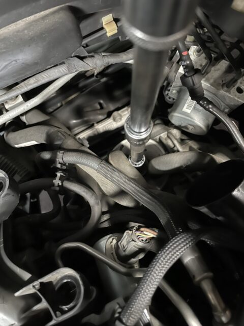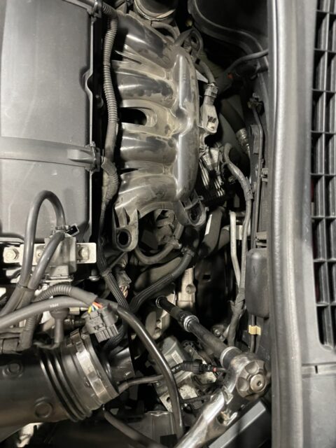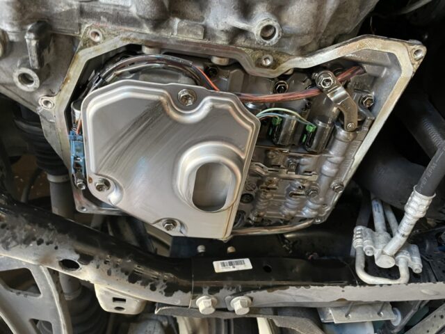 オイルクーラーを外してここにトルコン太郎のアタッチメントを取り付けます