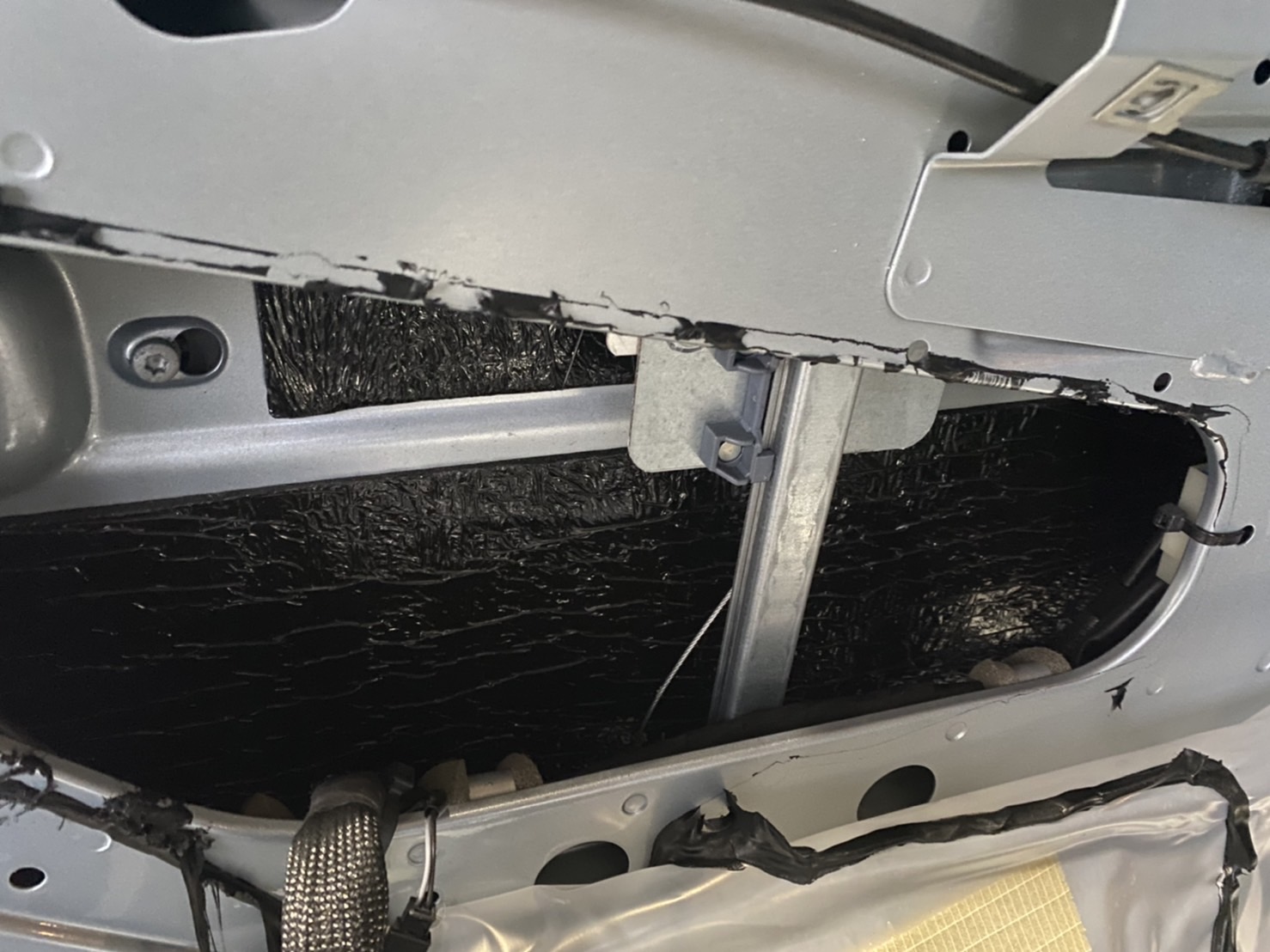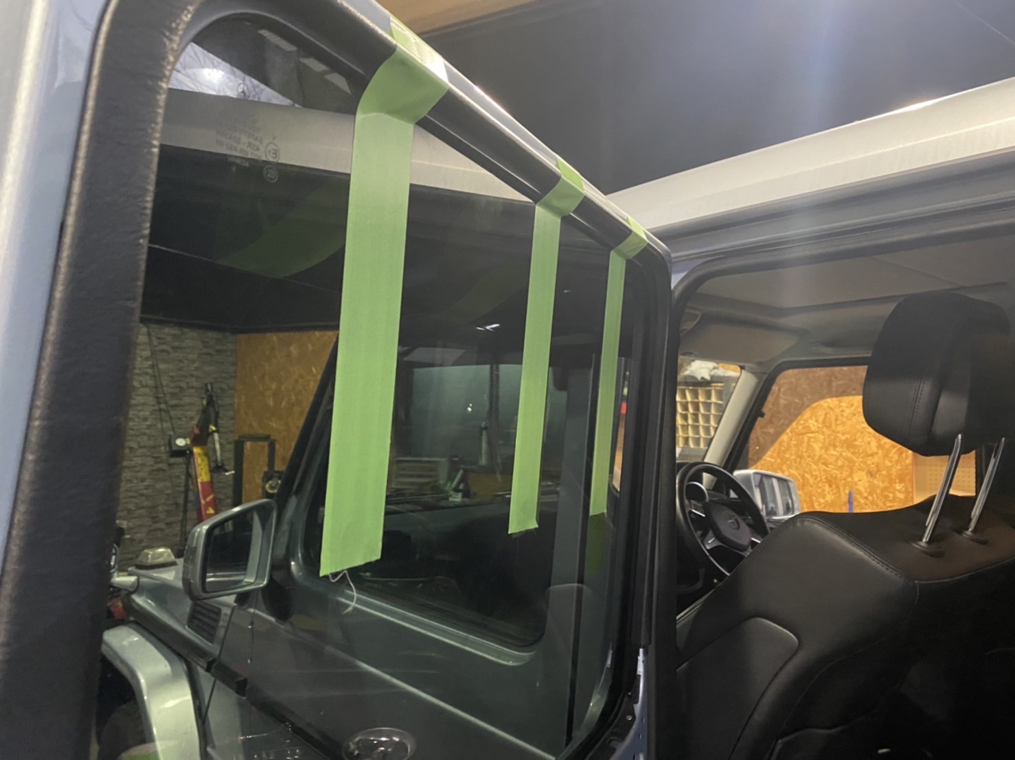 窓ガラスとレギュレーターを分離するので、ガラスが落ちてこない様にテープで固定します。