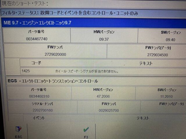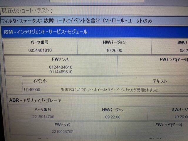 ベンツ Sクラス W221 ABS警告灯等、点灯修理