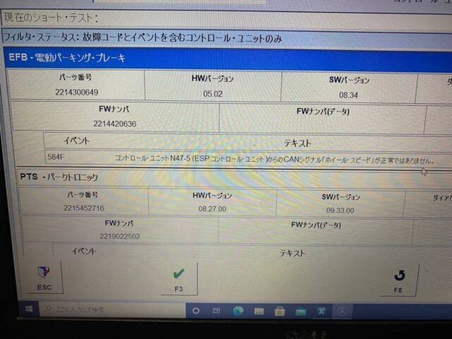 ABS警告灯、横滑り警告灯他多数警告灯点灯で入庫