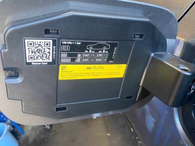 空気圧は給油口フラップに書いてある純正値で調整します