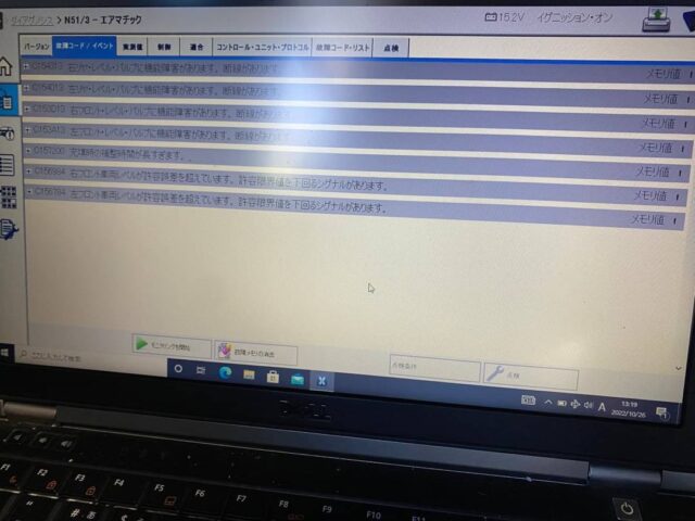 「走行中にエアサス警告灯点灯」