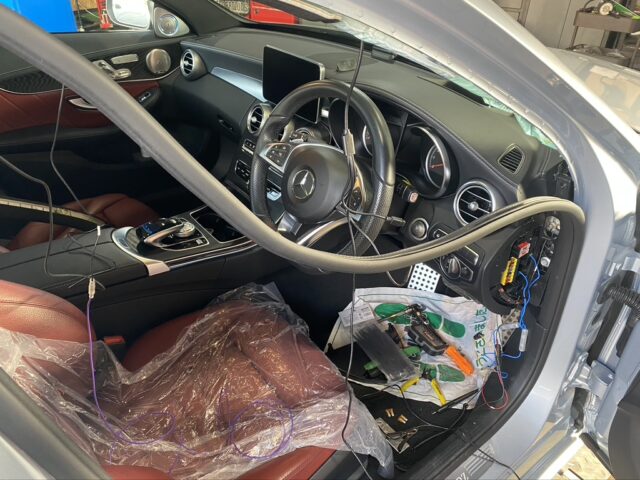 メルセデス・ベンツCクラス(W205前期)へドラレコ前後取付です。