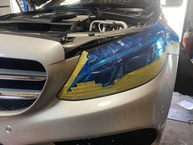 まず左右ヘッドライト、フェンダーをしっかりと養生