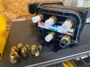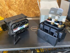 コンプレッサーで圧縮したエアを各エアサスに送る分配機の役割を担っています。