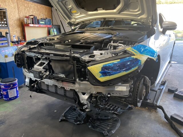 あとはフロントバンパーを取り付けて、フロントカメラやセンサーなどの作動確認、バンパー、フェンダー、ボンネットのチリがあっているか確認して終了です!!