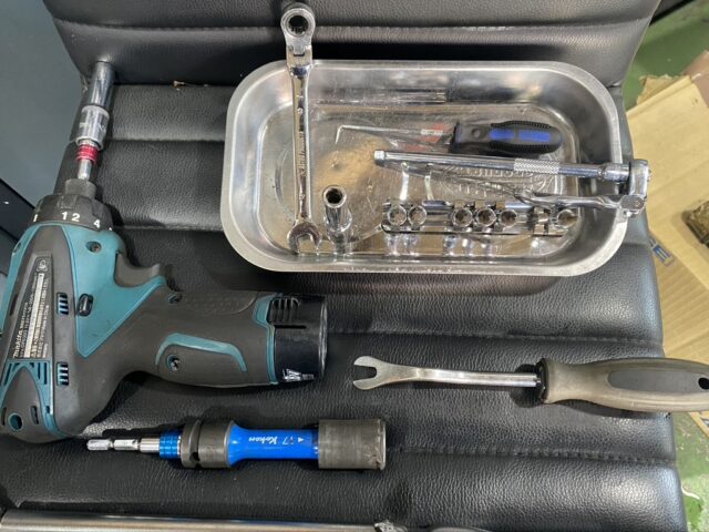 基本的には下の写真の工具でバンパーは外せます。W205,253,213,257,222,etc…ここらへんの世代は外し方似ているのでほぼほぼ工具は一緒です。