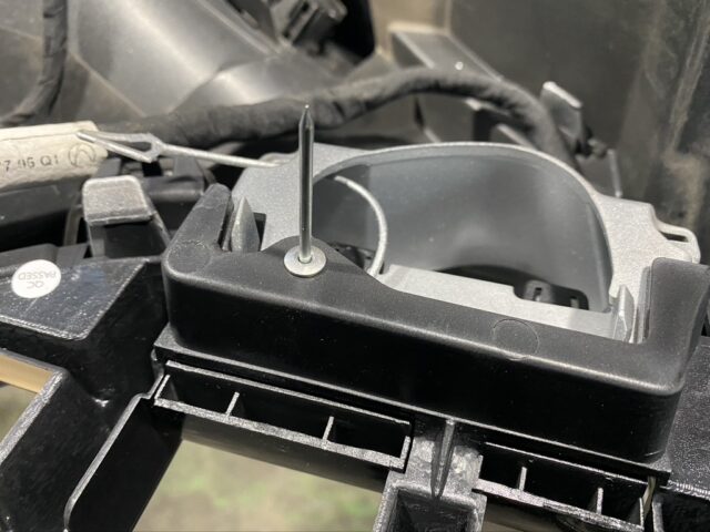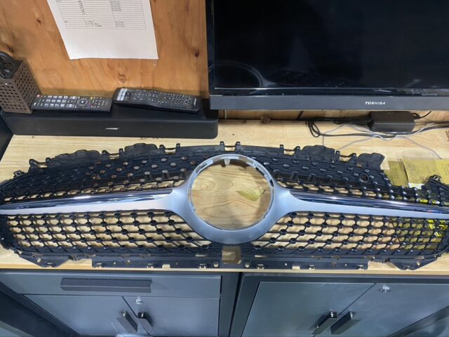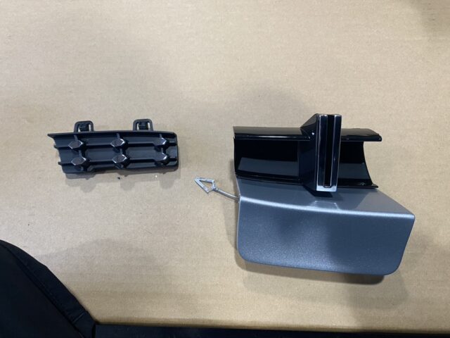 W257の場合、牽引フックのカバーにもグリルの柄がかぶっているので交換します。