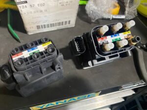 コンプレッサーで圧縮したエアを各エアサスに送る分配機の役割を担っています。