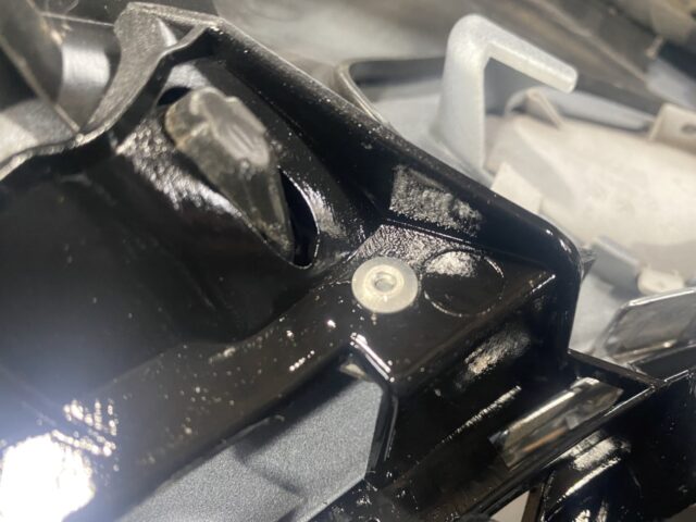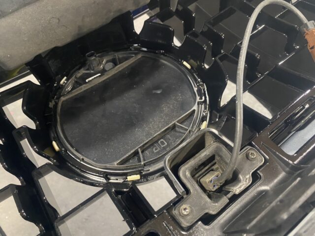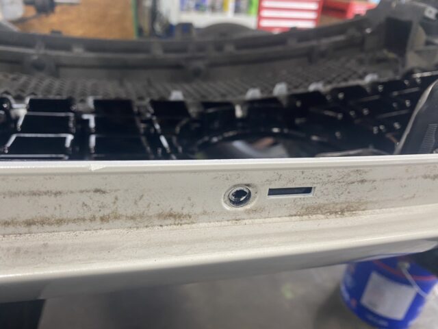 W213はグリルがツメの他にリベットでとまっているのでそれも外します