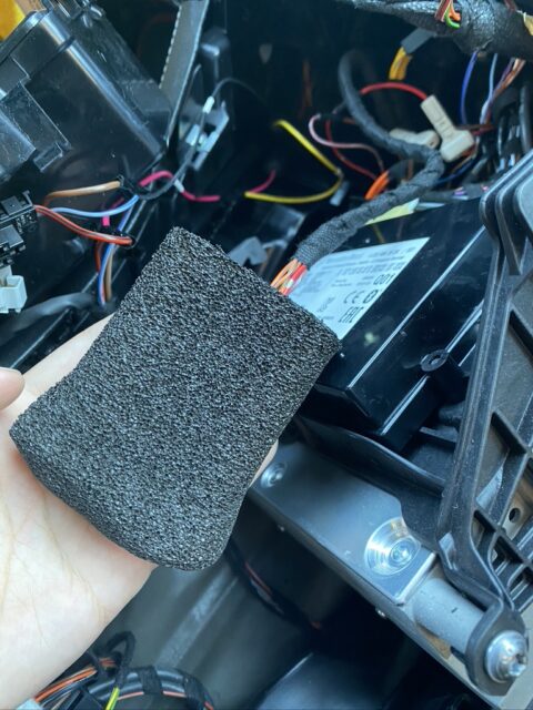 本体のディップスイッチで車両ごとの設定をし、スポンジテープで巻きます