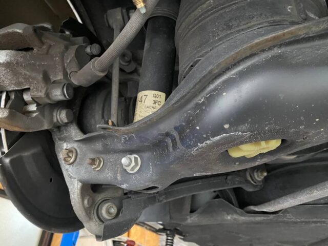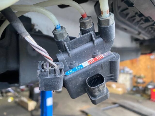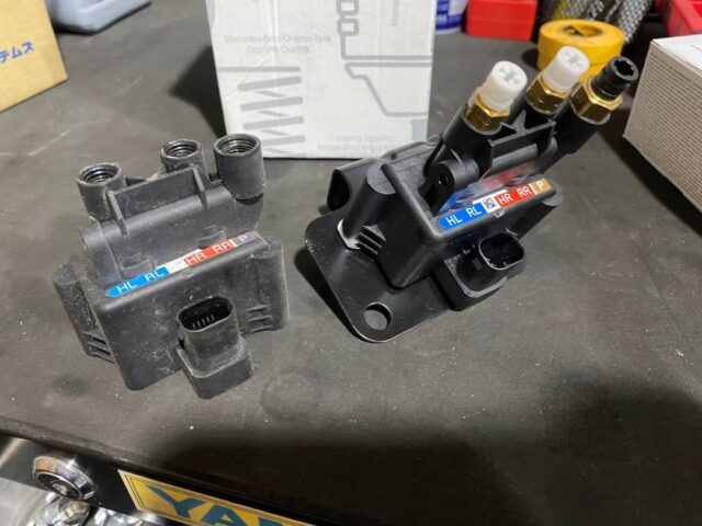 メルセデス・ベンツ E350 W212 左リアエアサス交換|エアサスバルブブロック交換