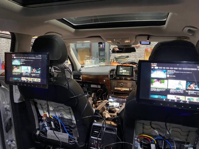 後部座席のモニターを取付していきます