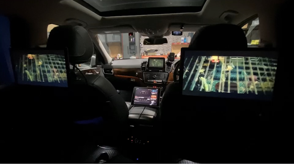 後部座席はミラーリング画面を映し出したままです✨
