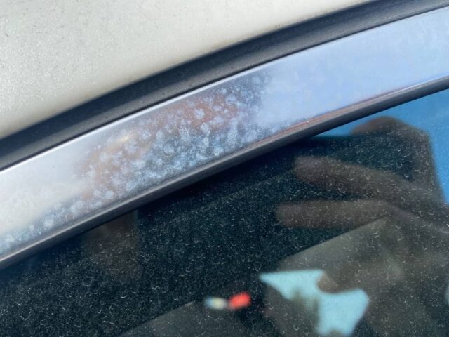 輸入車はモールがアルミ製のため酸性雨や外的要因により腐食し、まだら模様になってしまいます。