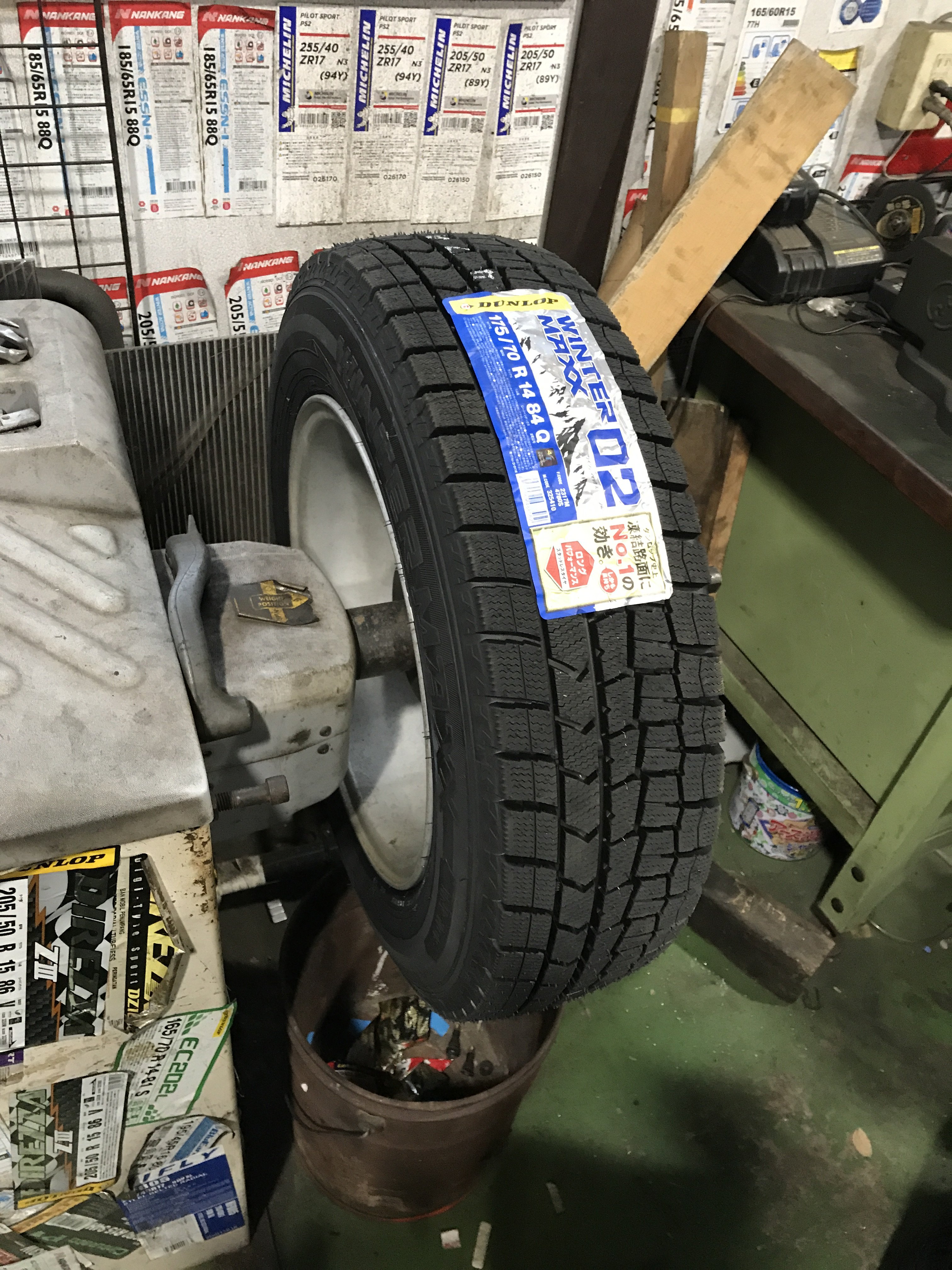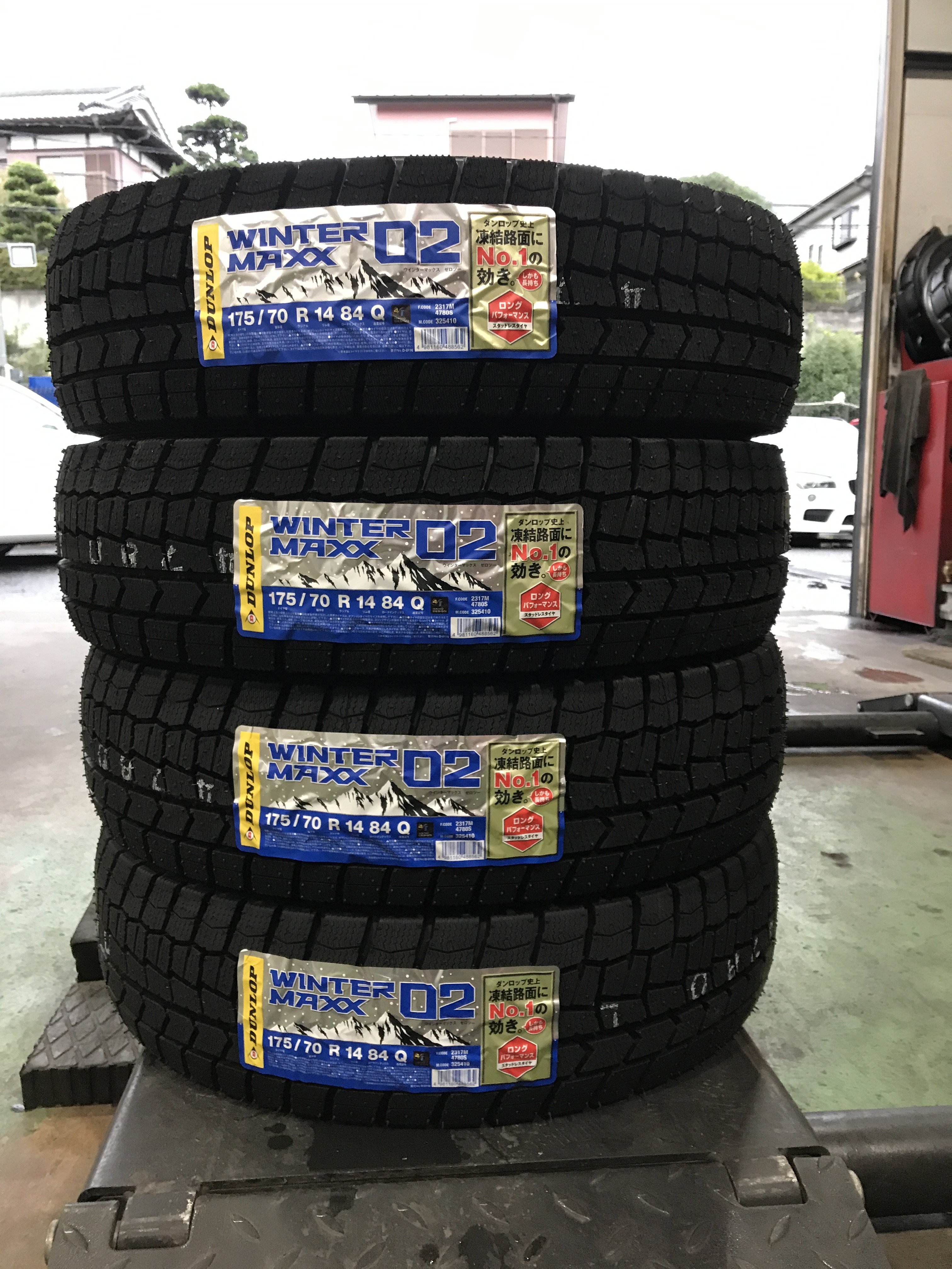 お持ち込みホイールにスタッドレスタイヤを組み込んで付け替え致しました。届いたスタッドレスタイヤはこちら。