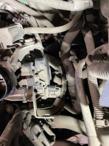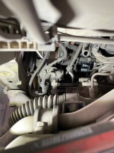 エンジンルームの配線やコネクターを外していきます