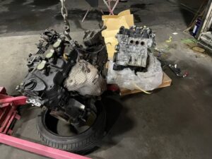 まずはエンジンオイルや冷却水などを抜き、エンジンを下ろす準備をしていきます