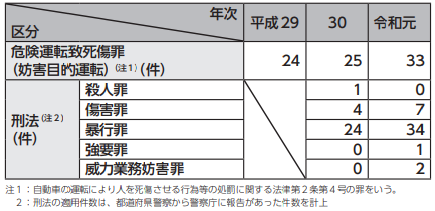 「あおり運転」への刑法等適用件数の推移(平成29~令和元年)