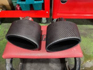 2本出しのカーボン調マフラーカッターへの交換になります♪