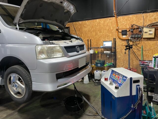 ホンダステップワゴン、ATF漏れ修理と同時にトルコン太郎でATFを圧送入れ替えしました。