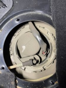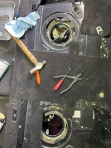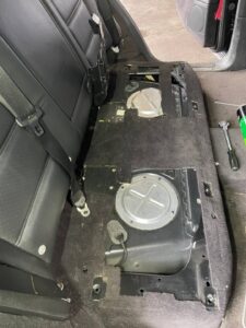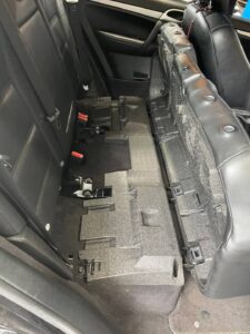 カイエンではリアシートの下にポンプがあるのでまずシートを外していきます
