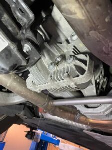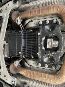 エアサスの車両だとコンプレッサーが邪魔なので取り外して作業を行います