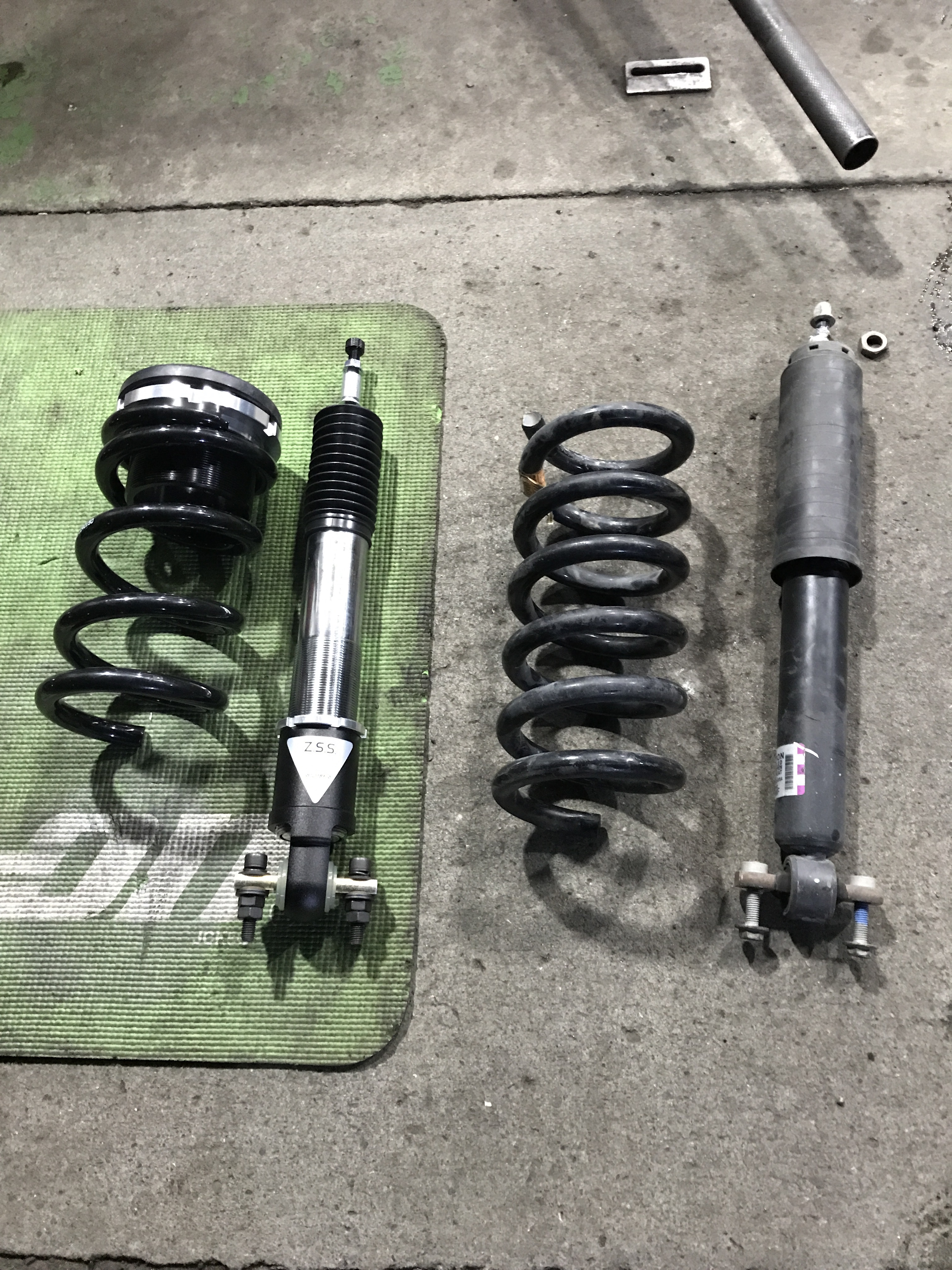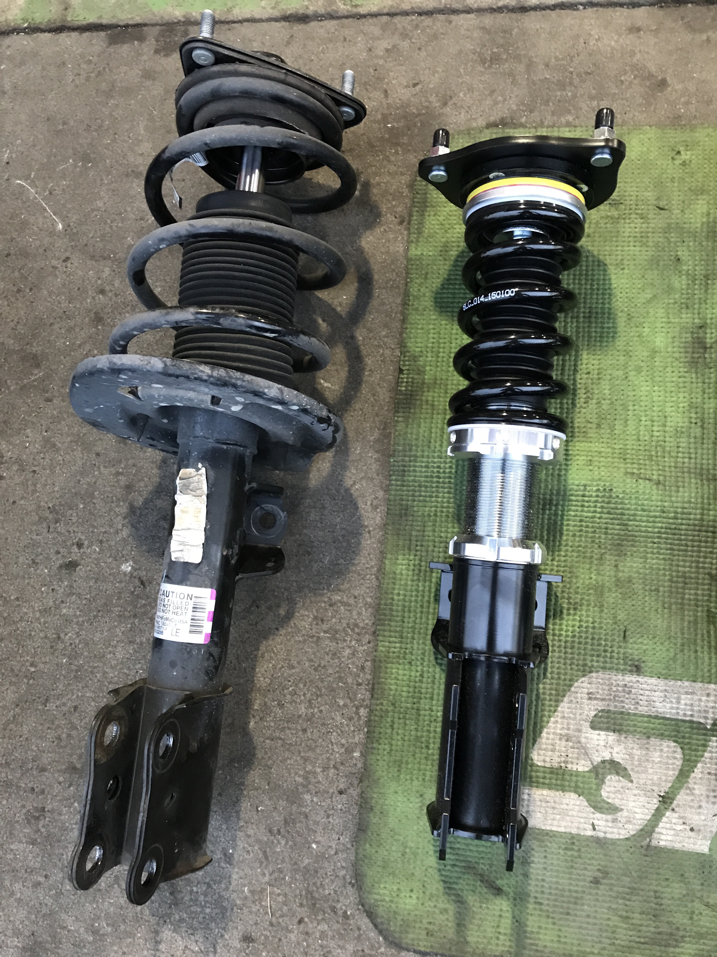 純正サスを取り外しまして、車高調を組み付けていきます。