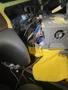 デッキ裏のカプラから目的の配線を探して、切って、ギボシをつけて割り込ませます