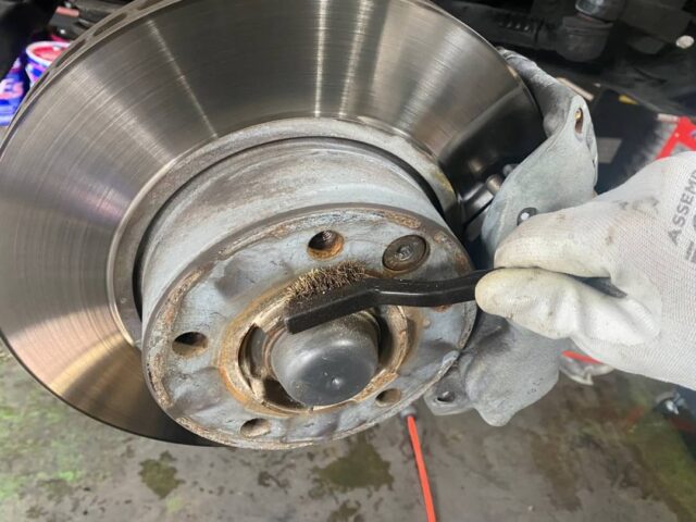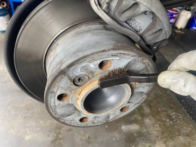 ブレーキ鳴きしないようにパッドの角をやすりで削ってます