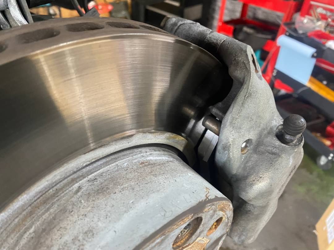 ブレーキ鳴きしないようにパッドの角をやすりで削ってます