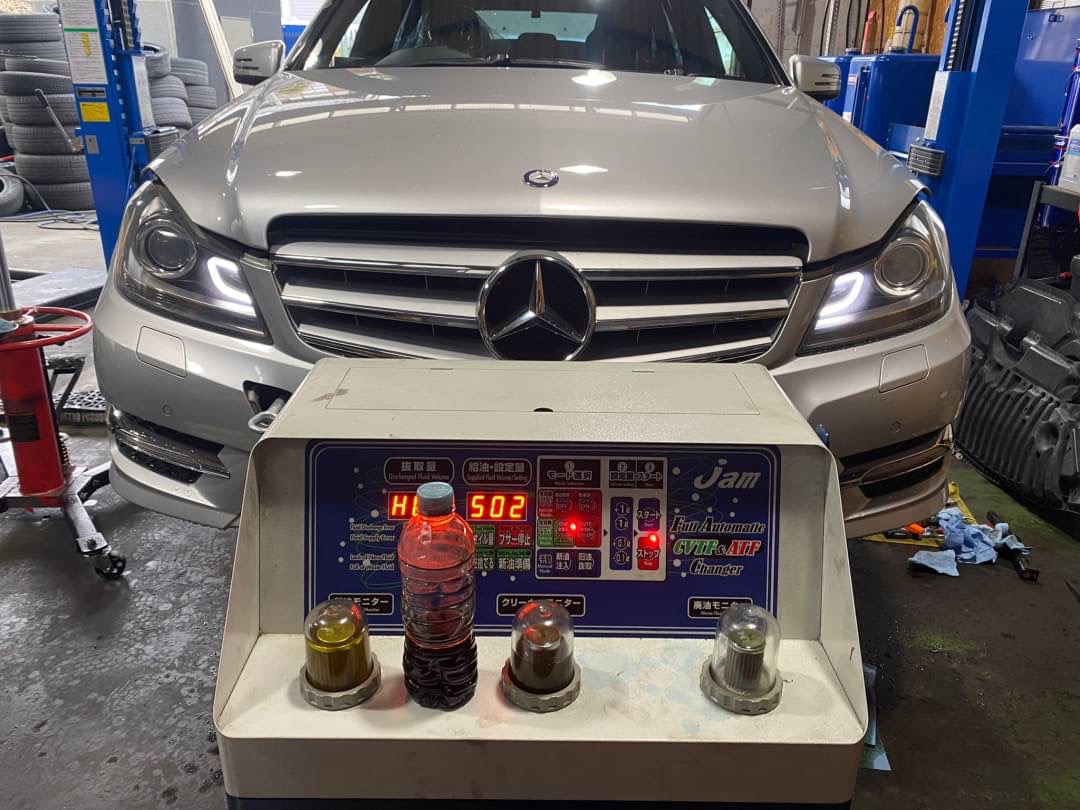 ベンツ Cクラス(W204) クーラント修理、トルコン太郎ATF圧送交換