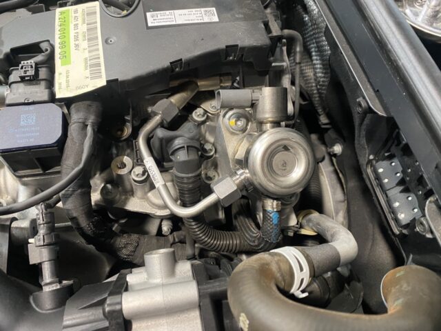 ボンネットを開けるとさらに強いガソリン臭が、、