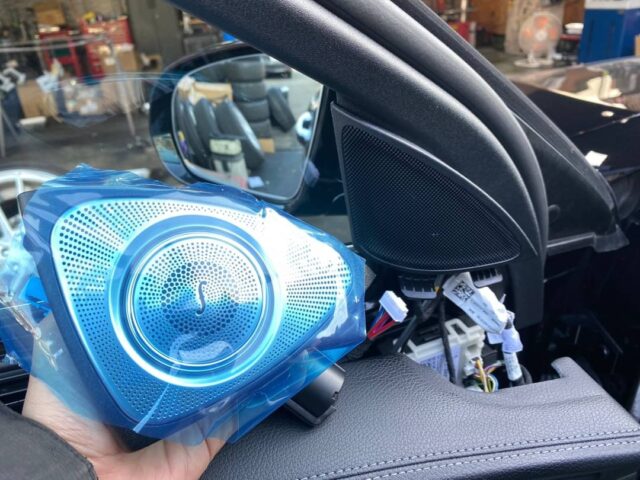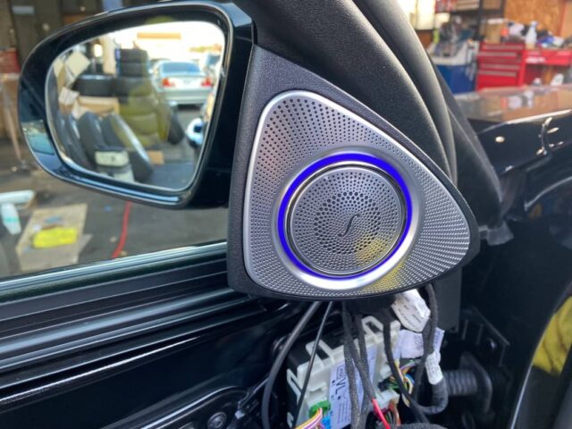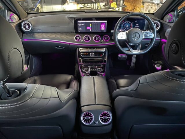 ベンツ Eクラス(W213)アンビエント連動エアコン吹き出し口前後、3Dツイーター取付