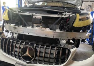 グリルと外したベンツマークを取り付けたバンパーを戻します!!!