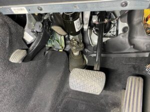こちらのお車はフットペダルでパーキングブレーキをかけるタイプなんですが、
