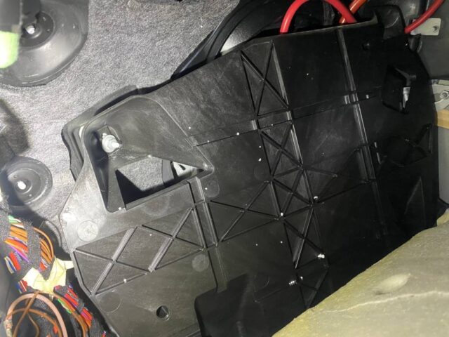 フロアマットをめくり、奥の蓋を外していきます