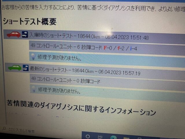 ・故障メモリーのリセットを実施