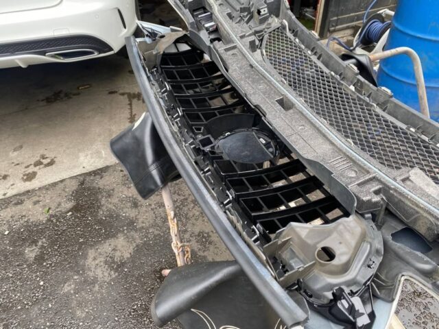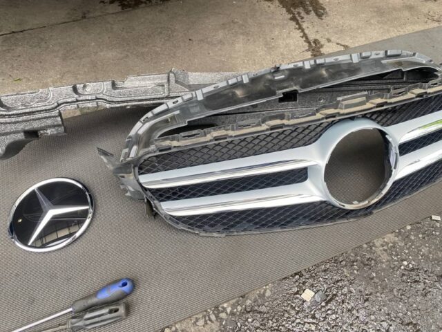 純正グリルやベンツマークを外します