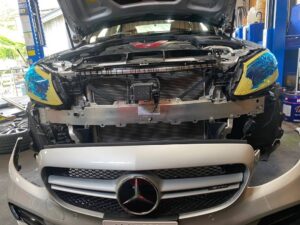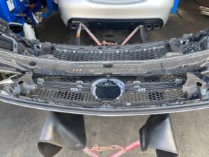 グリルと外したベンツマークを取り付けたバンパーを戻します!!!
