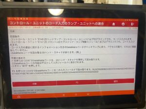 交換作業後に診断機でコーディングを行わないと正常に作動しませんのでコーディング行っていきます
