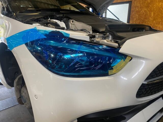 ヘッドライトとフェンダーを養生