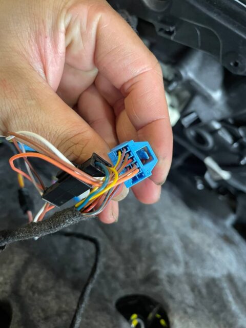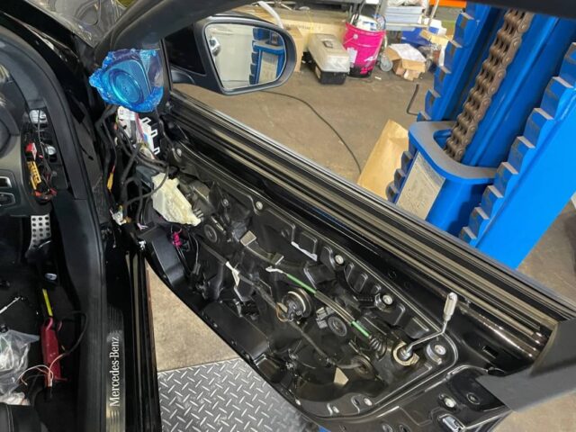 ドアパネル内側から配線作業を行い