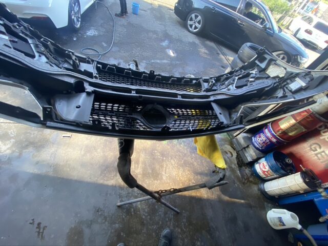 バンパーからグリルを外していくのですが、これもまたさぐりさぐり