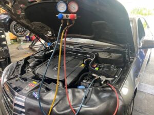 パワーエアコンプラス施工、車検事前点検