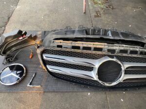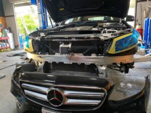 グリルと外したベンツマークを取り付けたバンパーを戻します!!!