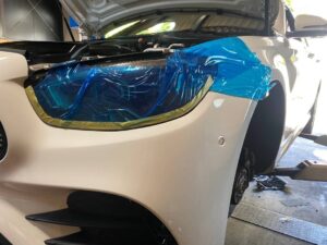 ヘッドライトとフェンダーはマスキングテープでしっかりと養生!